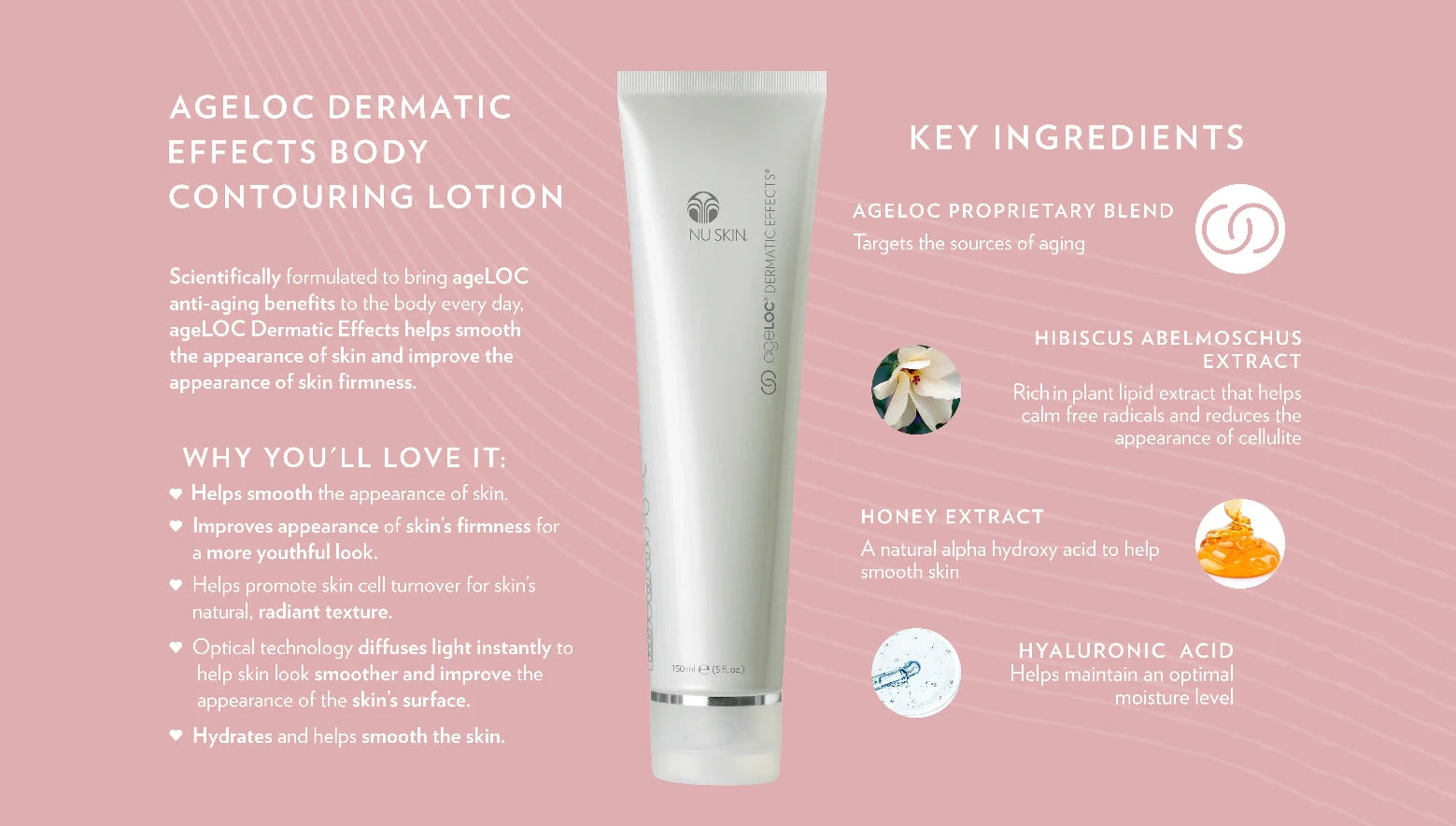 Scientifically formulated to bring ageLOC anti-aging benefits to the body every day, ageLOC Dermatic Effects helps smooth the appearance of skin and improve the appearance of skin firmness. This daily contouring moisturizer helps promote cell turnover, returning skin to its natural radiance.