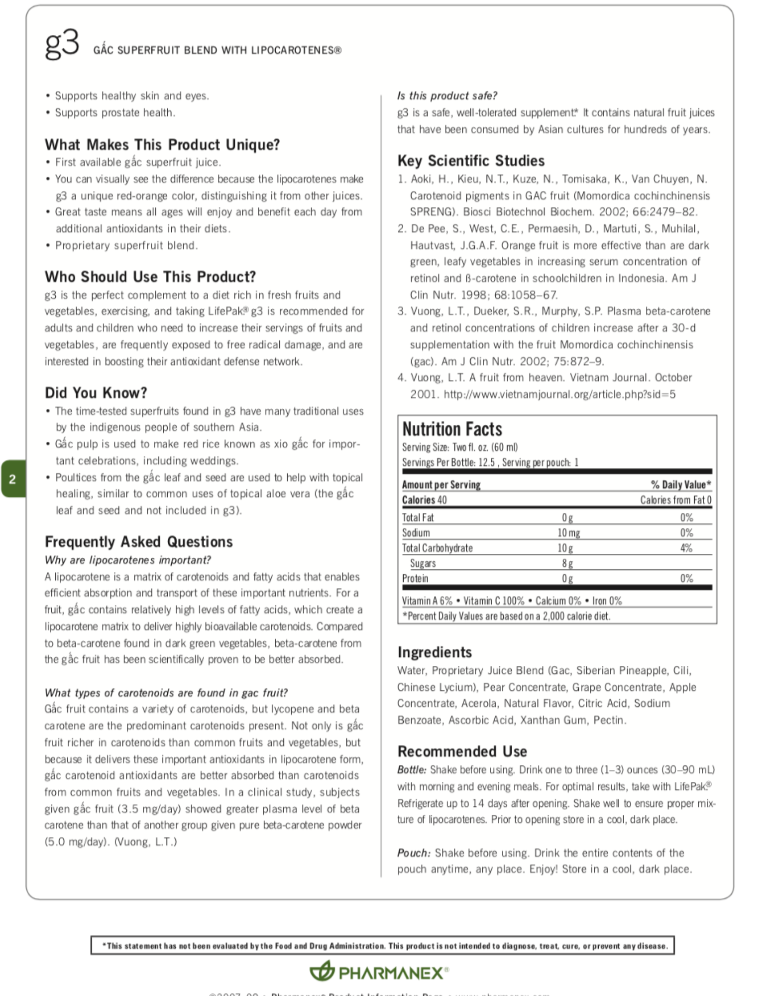 Shake before using. Drink one to three (1–3) ounces (30–90 mL) with morning and evening meals. For optimal results, take with LifePak®. Refrigerate after opening. Shake well to ensure proper mixture of lipocarotenes®. Store in a cool, dark place.